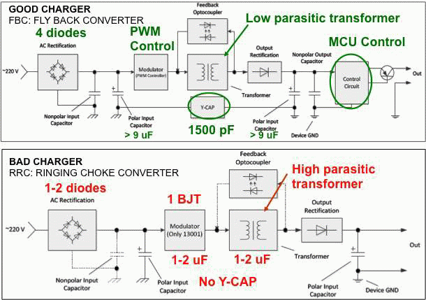 設計用于配合特定電話工作的OEM廠商的充電器具有較嚴格的噪聲規(guī)格,同時,在充電電路中廣泛采用USB連接器為配件市場創(chuàng)造了巨大的機會。為了在其中進行競爭,配件廠商充分地降低充電器成本。采用低成本電子器件的充電器給手機充電將注入很多噪聲到觸摸屏,而導致其很可能無法使用。