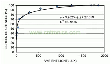 圖7. 將環(huán)境光強映射為最佳顯示屏亮度的曲線示例