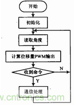 軟件編程主要包含3個(gè)模塊:PWM控制電流輸出模塊、RS 485通信模塊、MLX90316的SPI通信模塊,編程流程如圖5所示。PWM控制電流輸出模塊主要通過(guò)改變PWM的占空比來(lái)調(diào)節(jié)電流的大小。RS 485通信模塊主要用來(lái)接收上層系統(tǒng)的指令并根據(jù)指令將數(shù)據(jù)回傳。MLX90316的SPI通信模塊主要用于磁敏角度的讀取,SPI的通訊過(guò)程為:主控端先輸出1個(gè)0xAA以及1個(gè)0xFF作為通信起始信號(hào),然后接著輸出8個(gè)0xFF,而從端會(huì)同時(shí)輸出2個(gè)0xFF、4個(gè)字節(jié)的角度信號(hào)以及4個(gè)0xFF,從而完成一次數(shù)據(jù)通訊。
