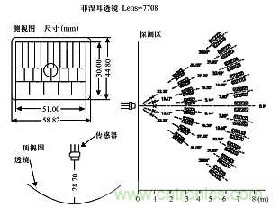 菲涅耳透鏡(圖3)根據(jù)菲涅耳原理制成,把紅外光線分成可見區(qū)和盲區(qū),同時又有聚焦的作用,使熱釋電人體紅外傳感器 (PIR) 靈敏度大大增加。菲涅耳透鏡折射式和反射式兩種形式,其作用一是聚焦作用,將熱釋的紅外信號折射(反射)在PIR上;二是將檢測區(qū)內(nèi)分為若干個明區(qū)和暗區(qū),使進(jìn)入檢測區(qū)的移動物體能以溫度變化的形式在PIR上產(chǎn)生變化熱釋紅外信號,這樣PIR就能產(chǎn)生變化電信號。