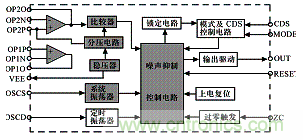 圖4陰影部分是PIR信號處理部分,有兩個運(yùn)算放大器、一個窗口比較器、一個穩(wěn)壓器、一個系統(tǒng)振蕩器和一個邏輯控制器。其它是依賴處理結(jié)果的控制部分,這里重點(diǎn)介紹PIR信號處理部分,控制部分就簡單略過。