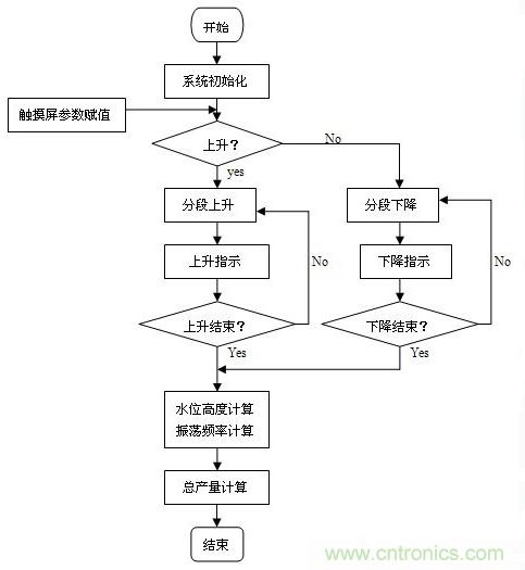 系統(tǒng)中采用觸摸屏作為人機(jī)界面,顯示操作畫面,進(jìn)行參數(shù)修改和指令輸入。通過觸摸屏可實(shí)現(xiàn)水位上升、下降高度等參數(shù)的設(shè)定和修改,實(shí)現(xiàn)實(shí)際水位高度變化、輸出振蕩頻率和總產(chǎn)量等的實(shí)時(shí)顯示等,并可對(duì)工作進(jìn)程進(jìn)行實(shí)時(shí)監(jiān)控。