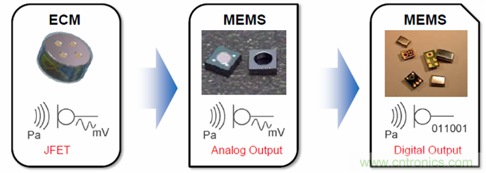 下圖展示了微型麥克風(fēng)的技術(shù)演進(jìn)過程。