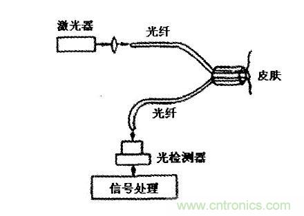 2、血流速度測量多普勒型光纖速度傳感器測量皮下組織血流速度的示意見圖4此裝置利用了光纖的端面反射現(xiàn)象,測量系統(tǒng)結構簡單。