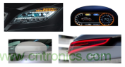 照明系統(tǒng)是汽車設(shè)計(jì)中關(guān)鍵的差異化因素,通過LED內(nèi)外部照明(包括尾燈、氛圍燈等)、高壓氣體放電燈(HID)、前照燈(包括遠(yuǎn)光燈、近光燈、LED轉(zhuǎn)向燈、LED霧燈和高速路面LED燈)、AFS及電機(jī)控制等,令汽車整車廠商改進(jìn)節(jié)能、提升能見度安全優(yōu)勢和打造獨(dú)特的車輛氛圍。