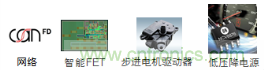 動(dòng)力系統(tǒng)、照明、主動(dòng)安全、車身及內(nèi)部是安森美半導(dǎo)體配合汽車市場發(fā)展趨勢的4大重點(diǎn)應(yīng)用領(lǐng)域。此外,安森美半導(dǎo)體還提供電源和車載網(wǎng)絡(luò)(LIN/CAN、FlexRay及以太網(wǎng))一系列產(chǎn)品和方案,可貫穿用于各類汽車應(yīng)用。