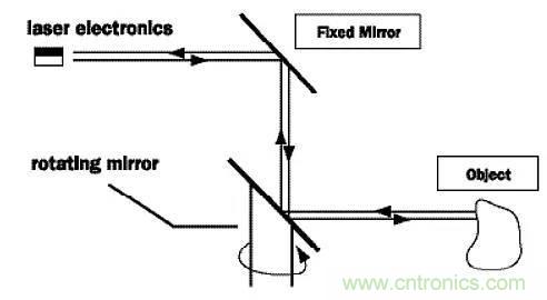 這套發(fā)射/接收組件和旋轉(zhuǎn)鏡面結(jié)合在一起,能掃描至少一個平面。鏡面不只反射二極管發(fā)出去的光,而且也能把反射回來的光再反射給接收器。通過旋轉(zhuǎn)鏡面,能夠?qū)崿F(xiàn)90到180度的視角,并且大大降低系統(tǒng)設(shè)計和制造的復(fù)雜度,因為鏡面是這里面唯一的運(yùn)動機(jī)構(gòu)。