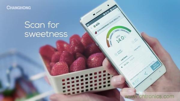 合作方ADI主要為這款手機提供光譜傳感器以及相關(guān)的算法,CP公司則負(fù)責(zé)提供APP以及成分分析數(shù)據(jù)。在功能上,可以直接使用這款手機判斷分析水果中的成分、甜度等信息。此外,它還能對更多物體進行成分分析,比如面包、肉以及藥物等。