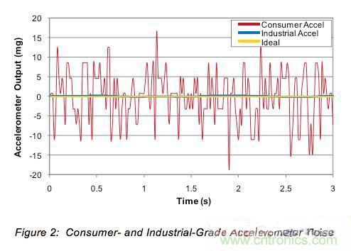 圖2:消費(fèi)級和工業(yè)級加速度計(jì)噪聲。