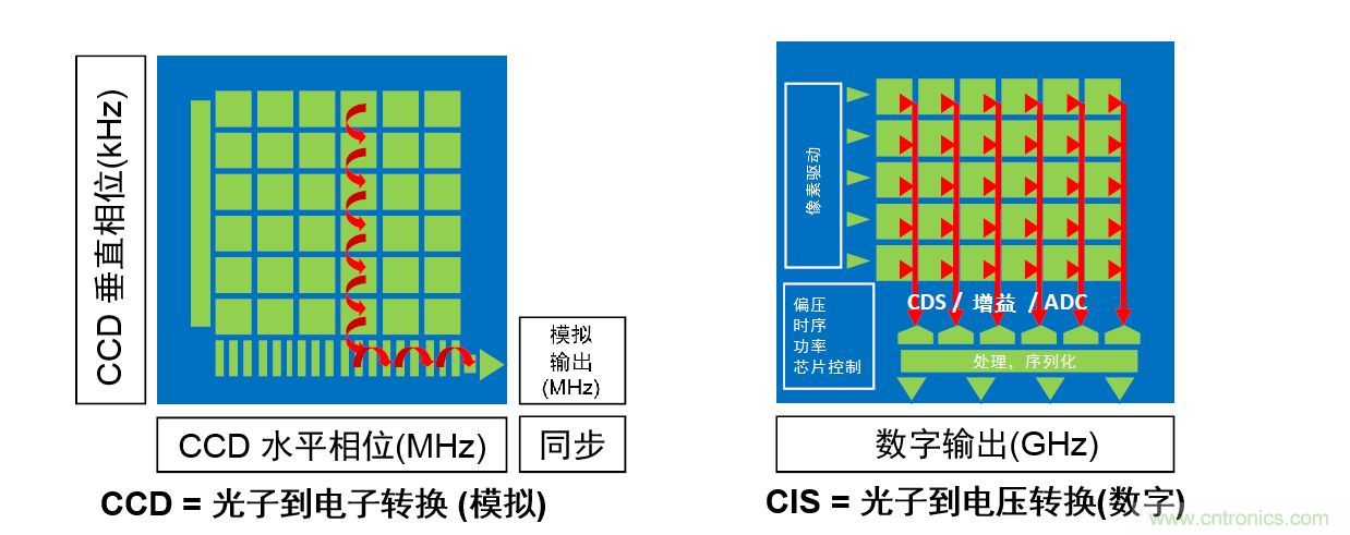早于上世紀九十年代初,有意見認為電荷耦合器件(Charge Coupled Device,CCD) 日漸式微,最終將成為“科技恐龍”。如果用索尼公司(Sony) 2015年的發(fā)布來看待,這個預(yù)言好像也有點道理:當時索尼公司正式發(fā)布終止量產(chǎn)CCD 時間表,并開始接收最后訂單。雖然多年前業(yè)界已預(yù)計這是遲早出現(xiàn)的舉措,但是索尼這一發(fā)布仍然震驚了專業(yè)成像社群。值得一提的是很多工業(yè)或?qū)I(yè)應(yīng)用(就是CMOS 圖像傳感器 (CIS) 的重點市場)到現(xiàn)在仍然基于CCD傳感器技術(shù)。到底CCD有什么特點優(yōu)于CIS,使其更具吸引力呢?在發(fā)展初期,CCD和CIS兩種技術(shù)是共存的;后來CCD被視為能夠滿足嚴格圖像質(zhì)量要求的高階技術(shù),而同時期的CMOS技術(shù)仍然未成熟并受制于其固有噪聲和像素復(fù)雜性等問題。在這一時期,圖像技術(shù)仍然以模擬結(jié)構(gòu)為主,而集成圖像處理功能(系統(tǒng)級芯片SOC) 這一意念還沒有被認真考量?;谀柖桑夹g(shù)節(jié)點的縮小使得SOC技術(shù)從2000年起快速擴展并更具競爭力?,F(xiàn)在CIS繼續(xù)致力改進光電性能,在很多方面都顯得比CCD優(yōu)勝。如果利用文首提到的“進化論”譬喻,其實可以把CIS視作抵過多次自然災(zāi)害仍然存活的哺乳類動物,而這個進化歷史更是跨越6500萬年的史詩式故事!