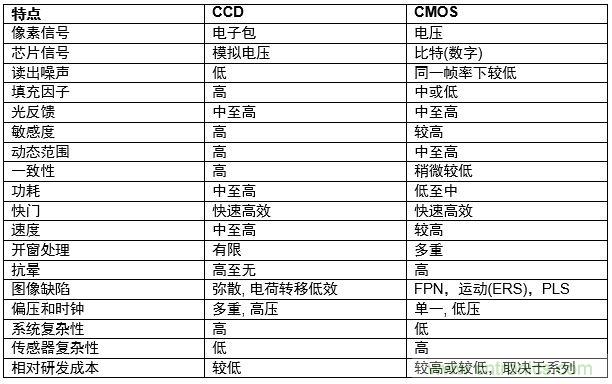 另一方面,CIS有較低采樣頻率,可以減小像素讀出所需要的帶寬,因而瞬時噪聲也較小??扉T會同時對陣列上的所有像素進行曝光。但是CMOS傳感器采用這一方法的話,由于每像素需要額外的晶體管,反而占用更多像素空間。另外,CMOS每一像素擁有一個開環(huán)輸出放大器,而因著晶圓工藝的差異,每一放大器的補償和增益會有所變化,使高或暗的不均勻狀況都比CCD傳感器差。相對于同級的CCD傳感器,CMOS傳感器擁有較低的功耗,而芯片上其它電路的功耗也比CCD經(jīng)優(yōu)化模擬系統(tǒng)芯片匹配的解決方案來得低。取決于供貨量并考慮到CCD導(dǎo)入外部相關(guān)電路功能的成本,CMOS的系統(tǒng)成本也有可能低于CCD。表一總結(jié)了CCD和CMOS的特點,有些功能有利于一種或其他技術(shù),所以毋需完全分割整體性能或成本。不過,CMOS的真正優(yōu)勢是通過系統(tǒng)級芯片(system-on-chip)方式實現(xiàn)導(dǎo)入靈活性,以及其低功耗特點。