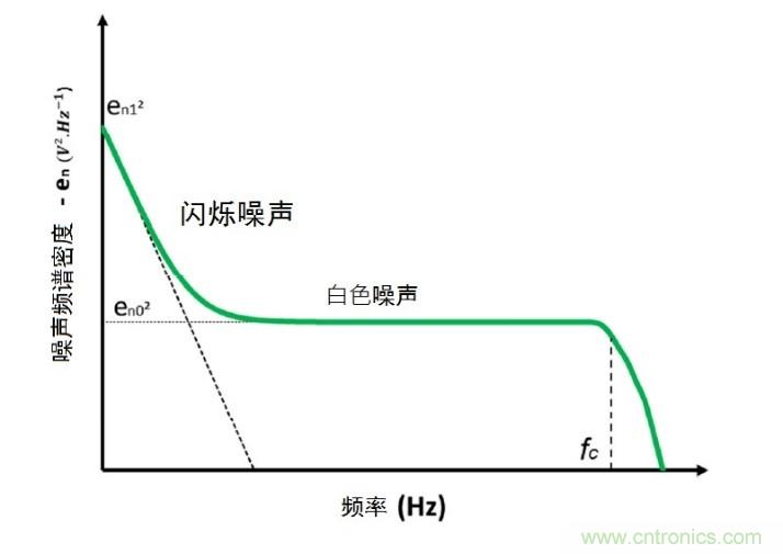 噪聲最由兩個因素造成:1/f閃爍噪聲和熱噪聲(見圖2)。閃爍噪聲是大自然中常有的噪聲,而它旳頻譜密度和地球自轉(zhuǎn)速度、海底水流、天氣以至氣候現(xiàn)象等活動相關(guān)。研究報告顯示普通蠟燭的閃爍速率是1/f 。在MOS器件和放大鏈各元素中,閃爍噪聲則是技術(shù)工藝誤差生成的缺陷,使電荷被困于柵極氧化物內(nèi)所造成的結(jié)果。電荷進出這些“陷阱”,造成晶體管通道內(nèi)的電流不穩(wěn)定 [6],故又稱「隨機電報噪聲」(random telegraph noise,RTS)。利用洛倫茲數(shù)學(xué)模型(Lorentzian mathematical model) 可以形容每一個“陷阱”的共振行為,而模型的總和(即MOSFET通道表面范圍的所有“陷阱”總和)在1/f頻譜上展示時,會全完符合具體噪聲的頻譜密度。結(jié)果顯示,1/f波幅與MOSFET通道表面面積成反比──而不是完全直觀。