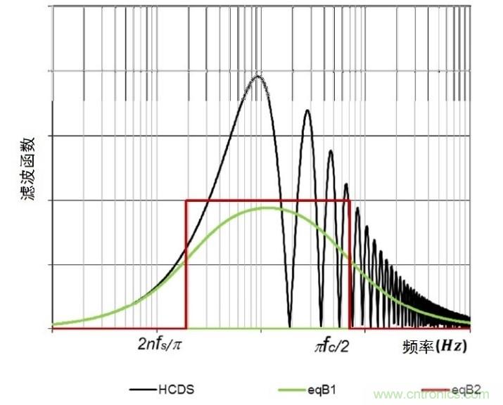 在算式中,fs 是采樣頻率, n是CDS 因子(通常n=2)。如圖3顯示,取決于采樣頻率,這一濾波或多或少地去除1/f噪聲頻率成分,尤其是當采樣頻率fs很高的時候 顯著(換句話說,電荷進出“陷阱”的動作將慢于CDS頻率)。HCDS濾波器結(jié)合放大鏈的低通濾波器可以簡化為一個如圖3所示的等效帶通濾波器。圖中的eqBP1 對應(yīng)一個一級帶通濾波器。這裡eqBP1的噪聲頻譜函數(shù)要除以2,以得到一個帶有HCDS函數(shù)的等效集成噪聲功率 。eqBP2 是eqBP1的陷波估算值。要取得集成噪聲功率,eqBP2 的上限和下限分別按照下列算式進行倍增: