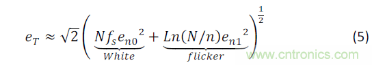 把算式(1) 和 (4) 合并后,得出總體集成讀出噪聲估算值如下: