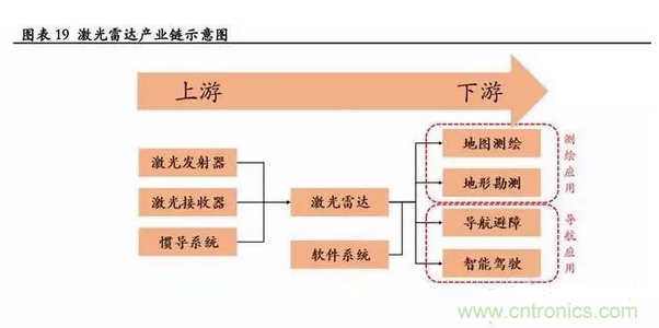 實際上,產業(yè)鏈的上游制造元件成本不高,不是構成成本的主要因素;且因為激光雷達是下游測繪、導航等應用的核心部件,目前產能稀缺導致供不應求,呈現賣方市場,對下游有很強的定價權,因此該產業(yè)鏈主要附加值在于激光雷達部分。
