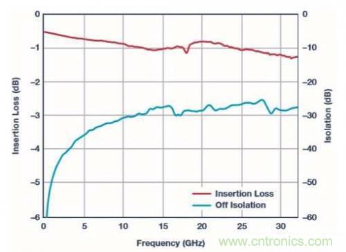 圖五 : SPDT MEMS開關(guān)性能,采用QFN封裝