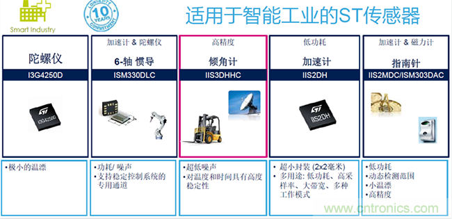 運(yùn)動(dòng)傳感器只是一個(gè)開端。在ST的產(chǎn)品規(guī)劃中,智能工業(yè)應(yīng)用的布局超過(guò)了運(yùn)動(dòng)傳感器本身,例如溫度傳感器和濕度傳感器等對(duì)于傳感器本身的參數(shù)提升、高精度是很重要的。
