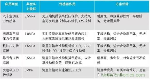 表1:汽車領(lǐng)域陶瓷電容壓力傳感器典型應(yīng)用