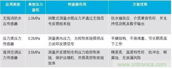 物聯(lián)網(wǎng)及家電領(lǐng)域陶瓷電容壓力傳感器典型應(yīng)用如下表所示: