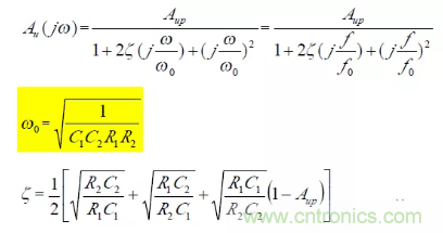 可見該低通濾波器特點是阻尼系數(shù)ζ 由電阻R1、R2,C1、C2 的比決定;而固有頻率ω0與R1、R2、C1、C2 具體數(shù)值有關(guān),即ω0與ζ 獨立可調(diào),互不影響。