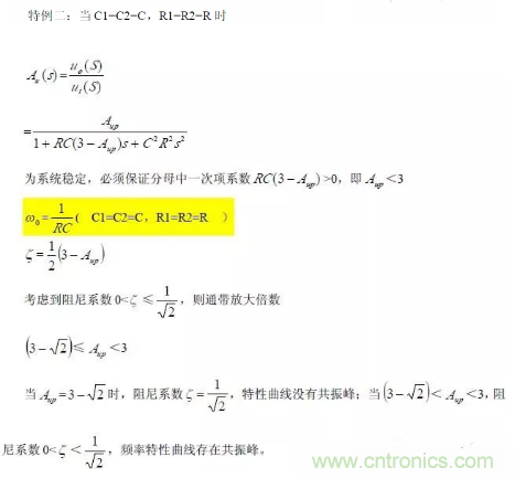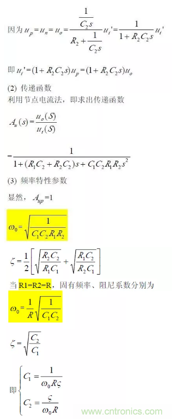 對于二階壓控低通濾波器來說,當通帶放大倍數(shù)Aup =1(單位增益)時,圖所示電路變?yōu)閳D所示,其中RF=R1+R2。