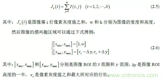 通過觀察圖像看出,激光條紋大致平行于圖像的u 軸,而且激光條紋處像素的灰度值高于圖像中其它像素的灰度值,所以圖像的ROI 可以通過對(duì)每行像素灰度值進(jìn)行求和得到: