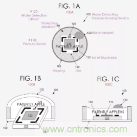 蘋果公司的專利經常涉及傳感器技術,此次公布的新專利是一種具有檢測水分功能的壓力傳感器,封裝尺寸約數毫米。該款壓力傳感器集成了用于檢測水分的一個或多個電極,并在一些實施方案中,還采用了能夠使水分蒸發(fā)的一個或多個加熱元件。