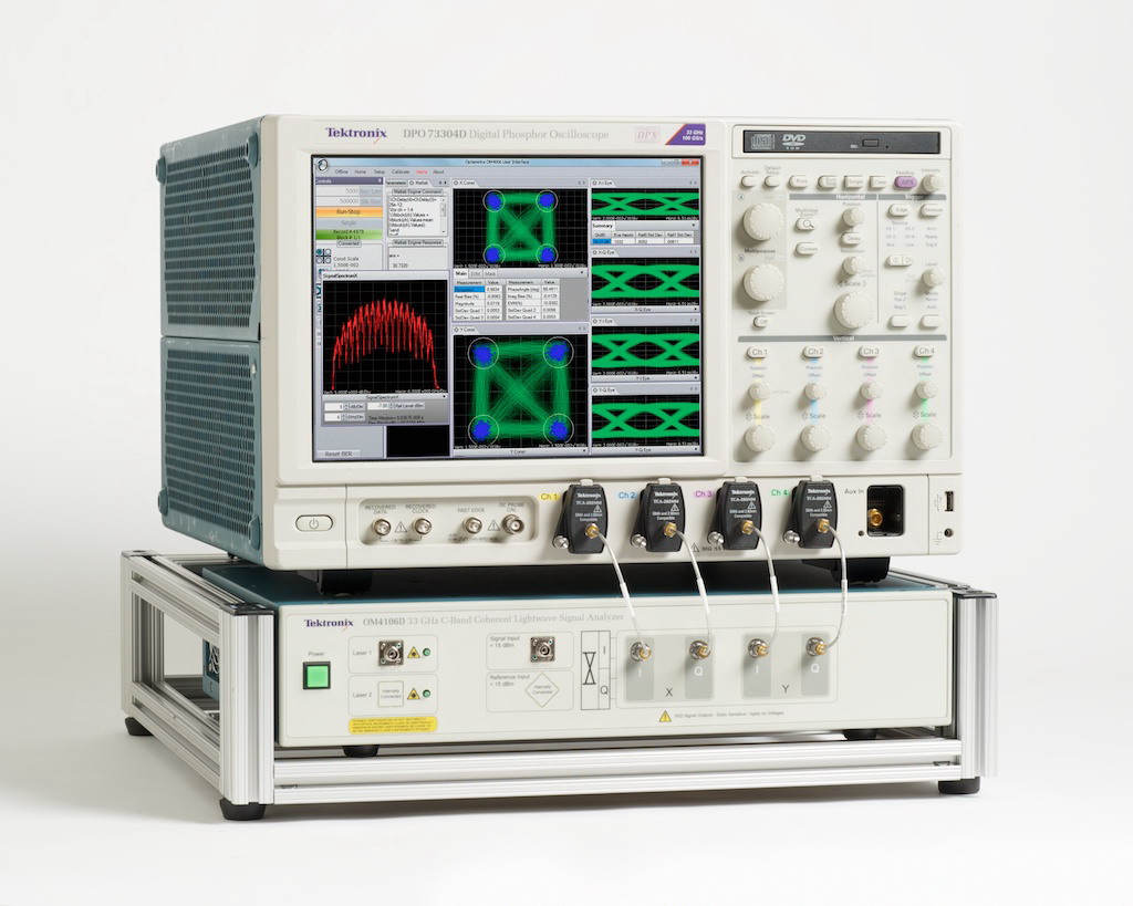 傳統(tǒng)上,光調(diào)制分析儀可與許多種示波器機(jī)型搭配使用。OM4106D是第一個(gè)與高速示波器緊密整合的光調(diào)制分析儀,這讓它的性能可以測試市場上速度最快的相干光波系統(tǒng)。DPO73304D示波器提供33GHz實(shí)時(shí)帶寬,雙通道采樣率為100 GS/s,四通道采樣率為50 GS/s。該示波器還有一個(gè)新 DataStore 公共接口,為分析任務(wù)提供2倍的從數(shù)字轉(zhuǎn)換器到實(shí)現(xiàn)OM4106D算法的 MATLAB 應(yīng)用的數(shù)據(jù)吞吐率。