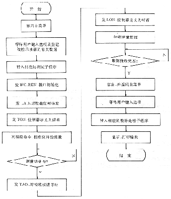 為了提高軟件的可靠性和檢測的精度,本系統(tǒng)采用了模塊化、結(jié)構(gòu)化的設(shè)計(jì)思想。模塊化使各參數(shù)檢測子程序能獨(dú)立完成而不受其它模塊的影響。這種方法使程序在調(diào)試和運(yùn)行時,具有良好的安全性和可靠性。另外,結(jié)構(gòu)化的順序進(jìn)行和其判斷功能,使之在程序設(shè)計(jì)中充分考慮到了各種可能出現(xiàn)的情況,并可自行處理在檢測中出現(xiàn)的一些問題,從而在一定程度上保證了程序的完整性。其軟件的流程圖如下: