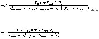 為在[t1-t2]和[t3-t4]時序期間符合斷續(xù)模式,圖5所示的時間參數(shù)td1和td2應總是正值。根據(jù)典型連續(xù)導通模式(CCM)功率因數(shù)校正規(guī)則和tD1_ON 和tD2_ON 表達式,確定變壓比條件m1 和 m2 不是難事。