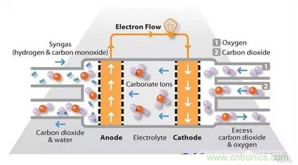 熔融碳酸鹽燃料電池(MCFC)使用懸浮在多孔陶瓷基體中的熔融碳酸鹽作為電解質(zhì)。通常使用的鹽包括碳酸鋰,碳酸鉀和碳酸鈉。