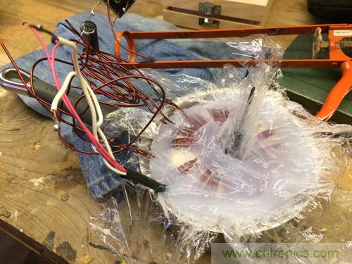 所以,這次我也想如法炮制。但是這次嗡嗡聲要大得多(我猜是因?yàn)榇渭?jí)繞組太松散),我決定把整個(gè)環(huán)芯都灌封好。但是,這可要用不少昂貴的環(huán)氧樹脂!也許用一些硅膠填隙劑來填充也可以起到同樣的效果。