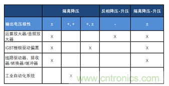 正如以上討論的,根據(jù)不同的輸入電壓軌,設(shè)計(jì)工程師可以選擇不同的拓?fù)?,?lái)提供適用于各種應(yīng)用的電源軌。表1總結(jié)了適合不同應(yīng)用的拓?fù)洹?/div>