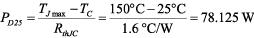 在與MOSFET SOA圖進(jìn)行比較之前,我們需要考慮MOSFET的溫度降額,因?yàn)镾OA是以室溫(TC = 25°C)下的數(shù)據(jù)為基礎(chǔ)的。首先計算TC = 25°C下的功耗: