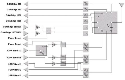 多模多頻段GSM/WCDMA手機的技術要求已經超過了傳統(tǒng)RFIC技術(如GaAs)極限。受這些超高性能要求影響最嚴重的是天線和射頻開關。