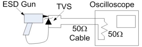 比較保護(hù)二極管鉗位電壓的最佳途徑是采用示波器來(lái)對(duì)發(fā)生ESD事件期間通過(guò)二極管的實(shí)際電壓波形進(jìn)行屏幕截圖。這可以通過(guò)圖1所示的測(cè)試設(shè)置來(lái)實(shí)現(xiàn)。[page]