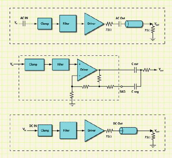 因此,直流耦合輸出信號可能是最劃算和直接的視頻信號耦合方法。此外,直流耦合還消除了輸出信號被兩次交流耦合的問題:一次在濾波器/驅(qū)動(dòng)器的輸出端,另一次在媒體設(shè)備的輸入端。