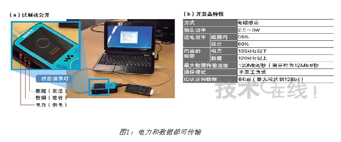 公開了使用索尼“Walkman”和蘋果“iPod nano”的試制機(a)??蓪⒆畲?20Mbit/秒的數(shù)據(jù)與電力一起進行傳輸(b)。[page]