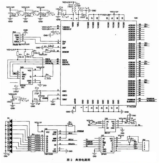 FF4232H芯片是由FIDI(Future Technology Devices International)公司生產(chǎn)的,專門(mén)用于USB到RS232/RS485/RS422之間的電平轉(zhuǎn)換芯片,數(shù)據(jù)收發(fā)和協(xié)議轉(zhuǎn)換工作全由芯片獨(dú)立完成,無(wú)需人工干預(yù),不用編寫(xiě)芯片的固件,給設(shè)計(jì)者帶來(lái)了極大的便利。利用該芯片只需要加少量的外圍電路就可以實(shí)現(xiàn)相應(yīng)的轉(zhuǎn)換。