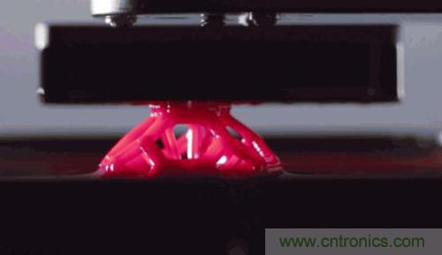 在從液體里“拉”出固體的3D打印技術(shù)當(dāng)中,活化固化劑的方式從熱壓變成了光,所以這種技術(shù)被稱(chēng)為立體光固化成型(SLA)。這里所用到的液體材料被稱(chēng)為光敏樹(shù)脂,一般是環(huán)氧樹(shù)脂或不飽和聚酯等摻雜一些對(duì)特定波長(zhǎng)敏感的光引發(fā)劑制成的。這類(lèi)技術(shù)本身也并不是什么新生事物了,它的歷史可以追溯到1984年。