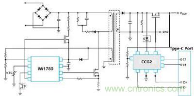 圖2.基于Cypress CCG2方案的PD和QC快充協(xié)議的充電器硬件框圖