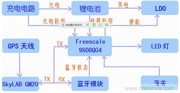 藍(lán)牙GPS模塊也是一個(gè)小小的便攜設(shè)備,需要實(shí)現(xiàn)電源的管理、GPS數(shù)據(jù)的處理、藍(lán)牙狀態(tài)的判斷以及點(diǎn)亮指示燈等功能。這都要求使用一個(gè)MCU來(lái)協(xié)調(diào)控制整機(jī)的工作。