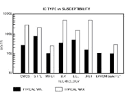 例如,典型情況下,一個(gè)人所帶電荷可以表征為一個(gè)150pF的電容器與330Ω的電阻器串聯(lián)。推算其靜電電壓有可能在8~15kV范圍內(nèi),甚至高達(dá)25kV。當(dāng)人接近系統(tǒng)時(shí),靜電場(chǎng)(ESD)和不均勻電壓分布會(huì)導(dǎo)致系統(tǒng)內(nèi)元件被損壞。一般來(lái)說,ESD很容易損壞未受保護(hù)的IC。據(jù)統(tǒng)計(jì),各類IC的ESD擊穿電壓分布如圖1所示。