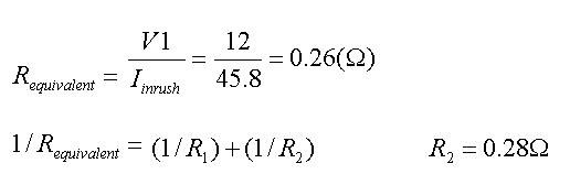 第二步:確定R2。在Inrush的初始狀態(tài),白熾燈的等效電路呈現(xiàn)出電容的特性:即在很短暫的時間到達(dá)峰值電流后,又被衰減成穩(wěn)態(tài)電流。因此,還需要在電容的回路上串聯(lián)一個電阻(R2)。