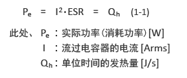 交流電流通過此類電容器時,會因電容器的電阻成分(ESR),產生式.1-1中所示的功率消耗Pe,則電容器發(fā)熱。