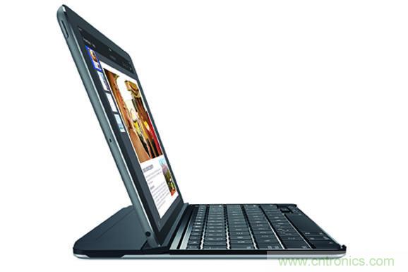Logitech Ultrathin還帶有一個磁夾,可以快速并牢固地附著在iPad上;還有一個用戶可以調節(jié)的內置支架,在輸入或查看時將iPad調節(jié)到最佳視角位置。