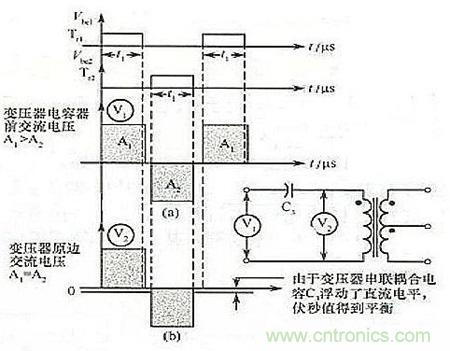 如果要這種不平衡的波形驅(qū)動變壓器,將會發(fā)生偏磁現(xiàn)象,致使鐵心飽和并產(chǎn)生過大的晶體管集電極電流,從而降低了變換器的效率,使晶體管失控,甚至燒毀。