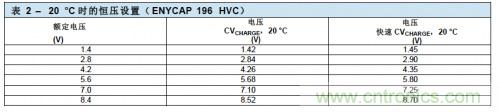 表2顯示了20 °C時標(biāo)準(zhǔn)配置的正確充電電壓。
