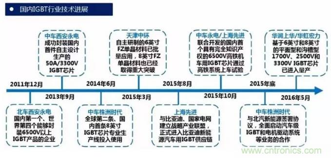 近幾年中國IGBT產業(yè)在國家政策推動及市場牽引下得到迅速發(fā)展,已形成了IDM模式和代工模式的IGBT完整產業(yè)鏈,IGBT國產化的進程加快,有望擺脫進口依賴。