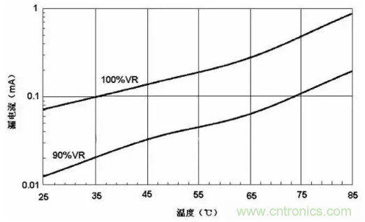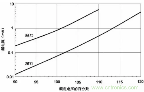 應(yīng)用電壓過(guò)高和溫度過(guò)高都會(huì)引起漏電流的增加。
